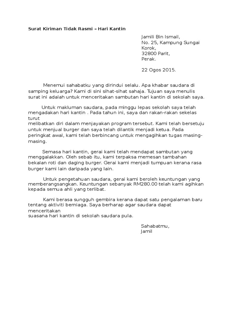 Contoh Surat Kiriman Tidak Rasmi Untuk Sahabat Lihat Letter Website