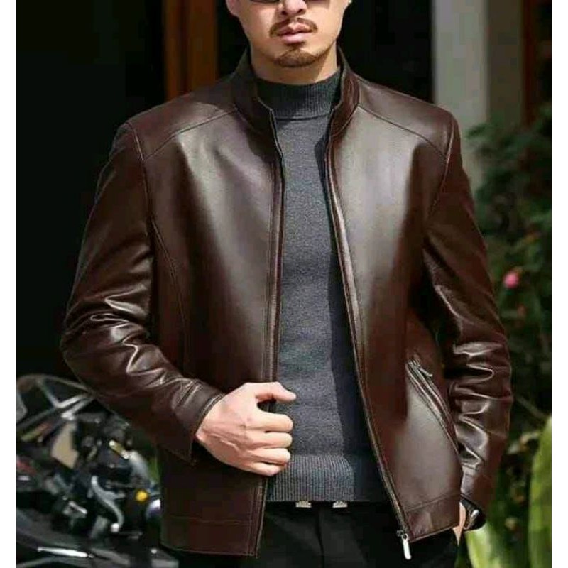 Jual Jaket Kulit Pria Asli Warna Coklat Tua Shopee Indonesia