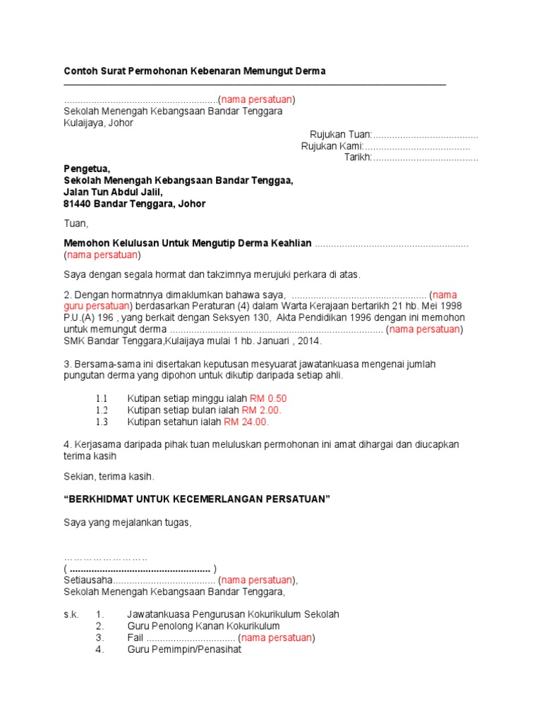 Contoh Surat Permohonan Kebenaran Memungut Derma Pdf