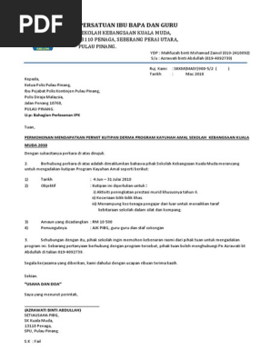 Contoh Surat Permohonan Permit Kutipan Derma Kayuhan Amal Pdf
